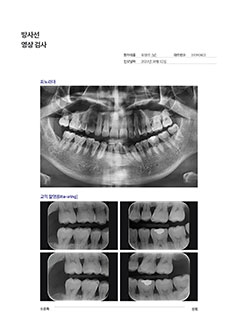 * 필요한 경우 진행문제 있는 치아를 더욱 정밀하게 확대해서 보기 위한 방사선 촬영 기법으로 치아 뿌리 끝 염증, 신경 치료 상태, 일반 충치 및 2차 충치 등을 관찰할 수 있습니다.