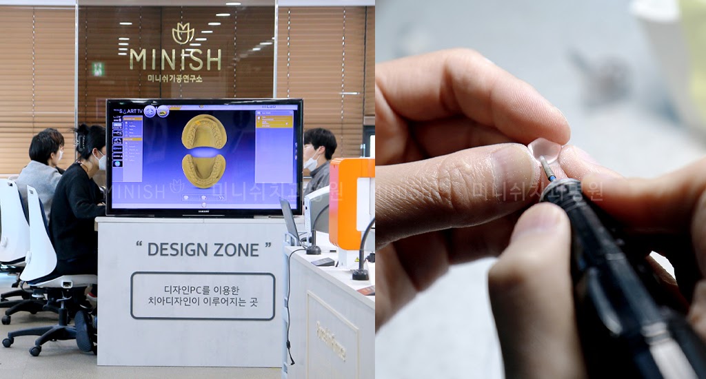보철물과 자연치아가 닿는 부분에 번연봉쇄가 되지 않으면, 2차 부작용이 일어납니다. 높은 정밀성은 ‘치아 건강’의 필수 조건이며, 미니쉬가 매우 정밀하게 제작되는 이유입니다. 미니쉬는 개인의 손상된 범위만큼만 복원하여 맞춤 제작되기 떄문에 같은 모양의 미니쉬는 단 하나도 존재하지 않습니다. 이렇게 만족도 높은 결과물을 얻어내기 위해서는 치아 디자인을 하는 기공사와 고객 간의 커뮤니케이션이 매우 중요하며, 이를 바탕으로 제작한 후에라도 수정이 필요할 시에 즉각적인 반영을 위해서 미니쉬 치과 병원에서는 치과 치료를 위해 오래전부터 자체 기공소를 운영하고 있습니다. 미니쉬는 다년간의 경험으로 숙련된 기술력을 가진 기공사들로 구성돼 치아 보철물 제작이 매우 정교하게 진행됩니다.