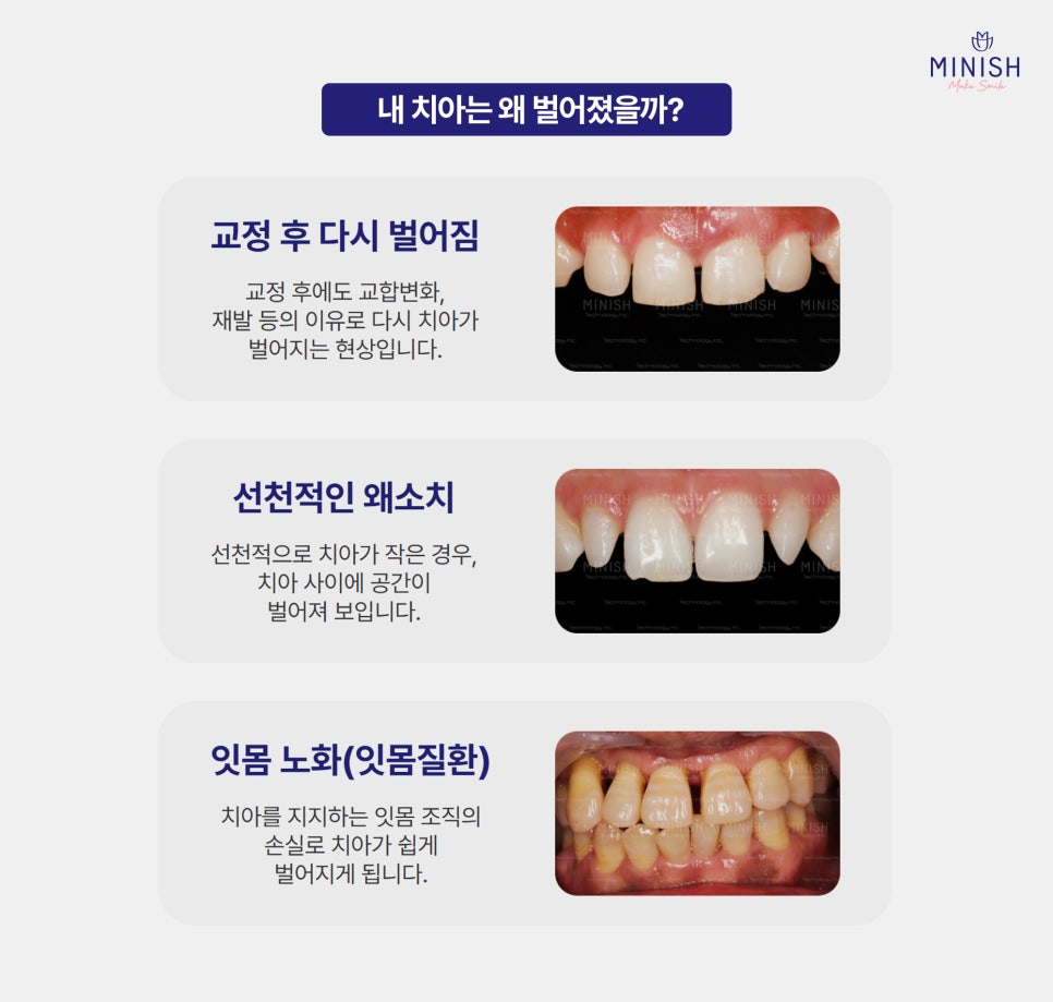 벌어진 치아. 방치하면 생길 수 있는 문제와 미니쉬 솔루션