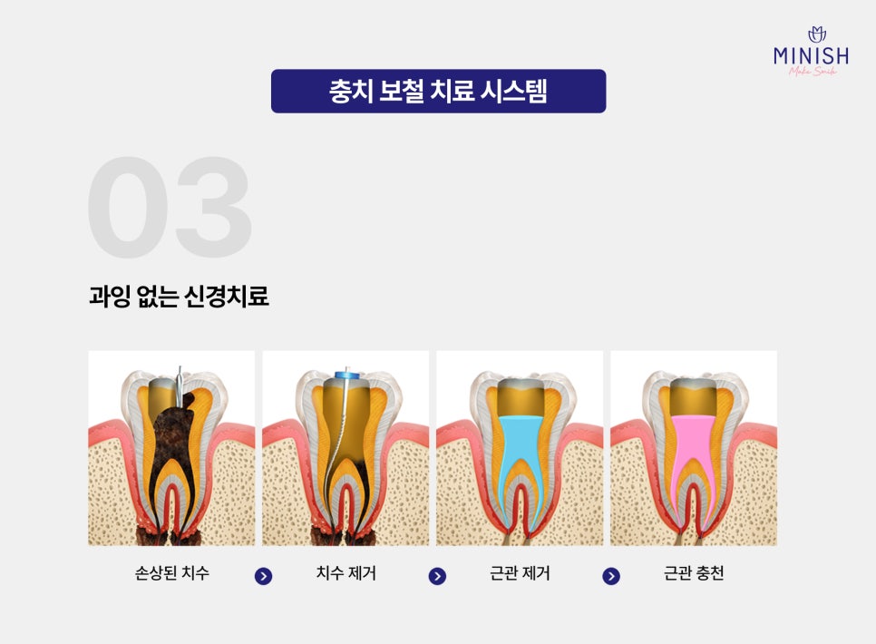 신경 손상이 명확한 경우에만 신경 치료를 진행하며, 건강한 신경은 최대한 살려 보존합니다.