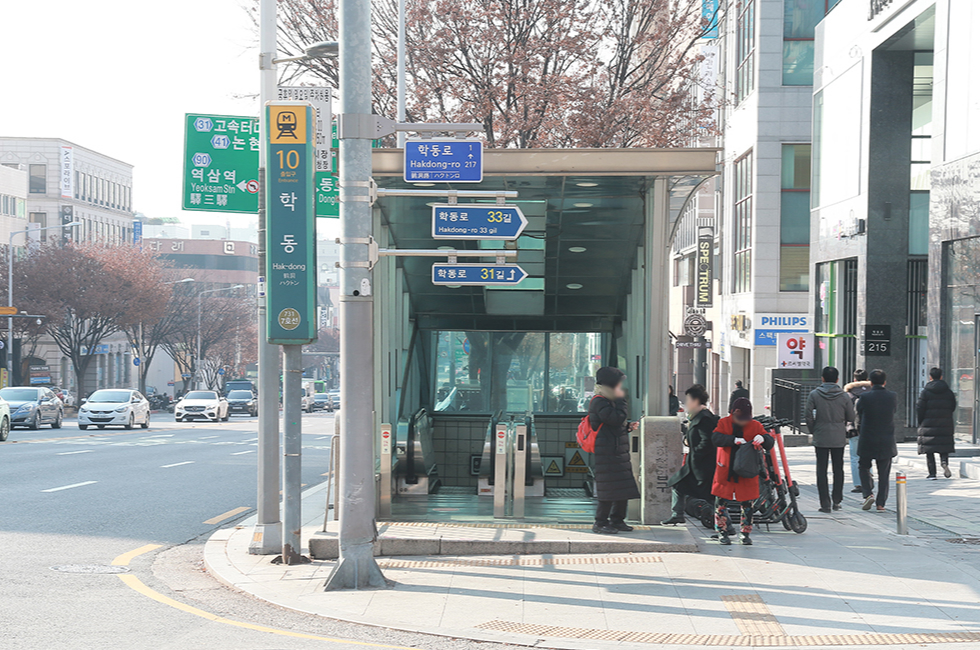 신사역 1번 출구에서 탑승